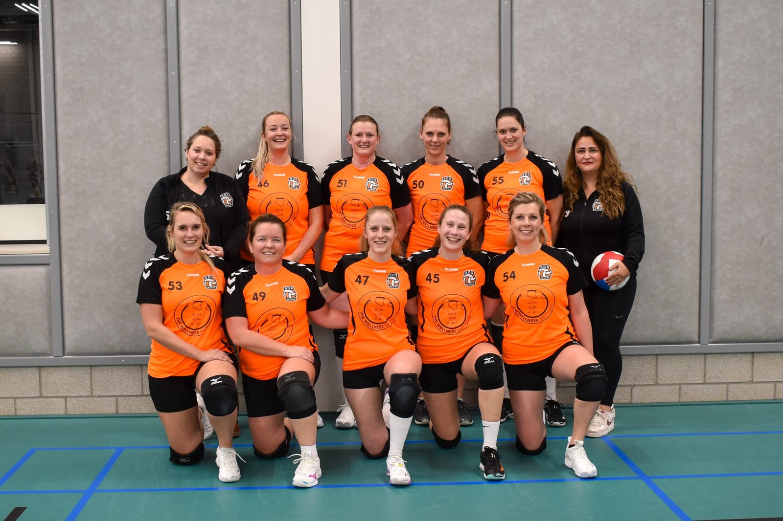 Dames 2 Competitie Tweede klasse Trainingstijden Woensdag van 19:30 tot 21:00 Trainer Dames 2 Bovenste rij van links naar rechts: Cindy MonsterKarola HooijerJanneke HazelegerInge KruitboschMirte BoschJoanne Koster Onderste rij van links naar rechts: Berlinde Kok-TellegenRike van den BeldAnneleen van HalterenJudith van LaarMarina Bos